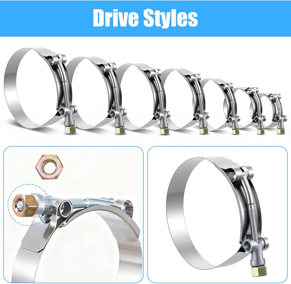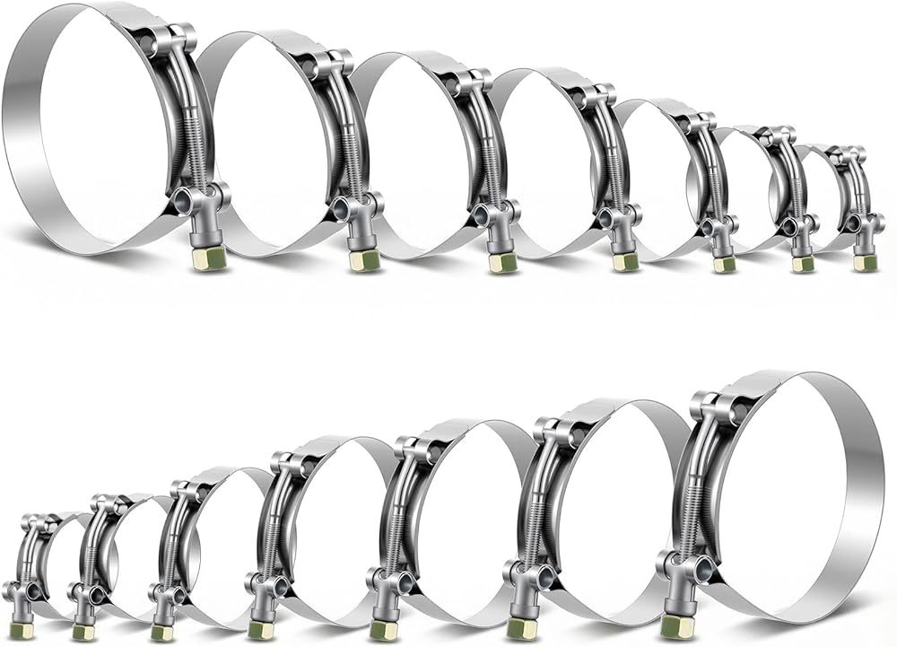 【Wide Application】 This T-Bolt Hose Clamp set offers exceptional versatility, perfect for performance automotive work on turbo and supercharger parts, intercooler connections, and radiator hose clamp applications. Beyond vehicles, these heavy-duty hose clamps are ideal for marine engine cooling, irrigation systems, and industrial piping, widely used in various industries, including industrial applications, automotive repairs, and household usage.