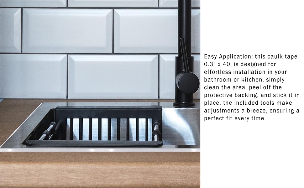 Easy Application: this caulk tape 0.3" x 40' is designed for effortless installation in your bathroom or kitchen. simply clean the area, peel off the protective backing, and stick it in place. the included tools make adjustments a breeze, ensuring a perfect fit every time
