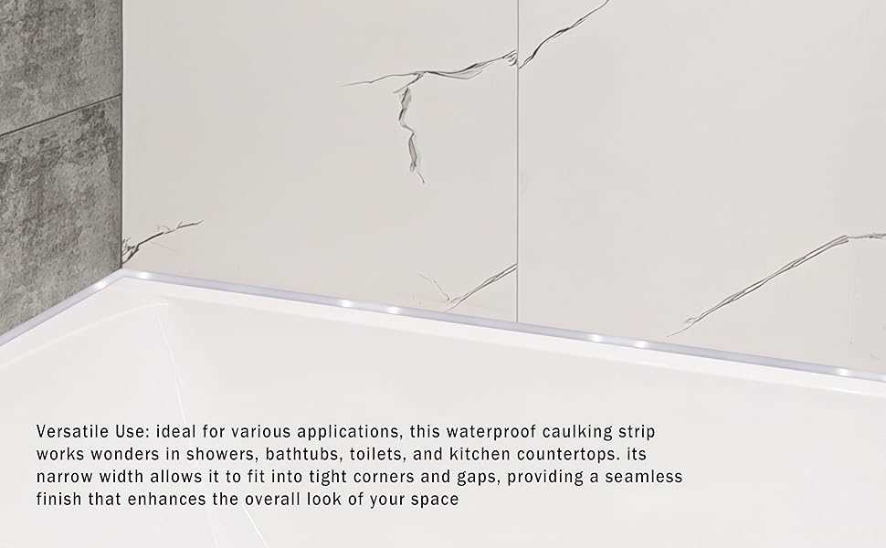 Versatile Use: ideal for various applications, this waterproof caulking strip works wonders in showers, bathtubs, toilets, and kitchen countertops. its narrow width allows it to fit into tight corners and gaps, providing a seamless finish that enhances the overall look of your space