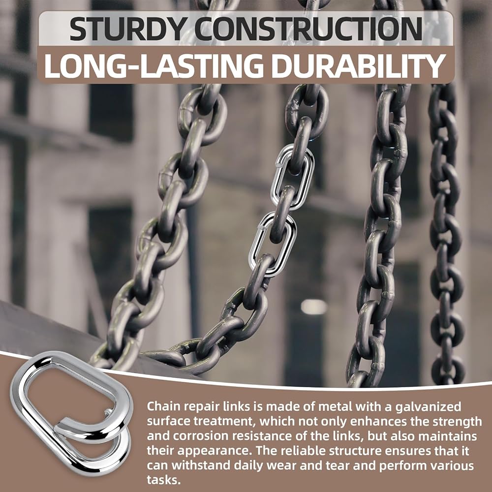 Sturdy construction, long-lasting durability: Chain repair links is made of metal with a galvanized surface treatment, which not only enhances the strength and corrosion resistance of the links, but also maintains their appearance. The reliable structure ensures that it can withstand daily wear and tear and perform various tasks.