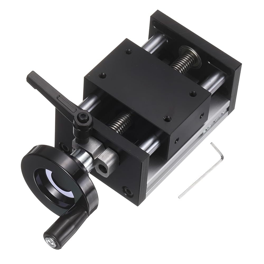 Installation: Simply secure the included wrench on a flat surface to align the dual optical axes. Turn the black control knob to activate the ball screw drive, moving the slide smoothly for precise adjustment. Suitable for the precise positioning of small equipment, sample adjustment.