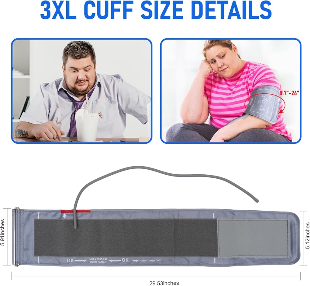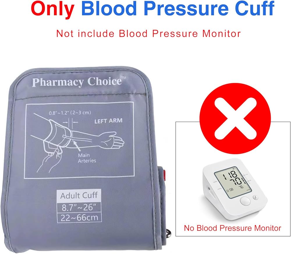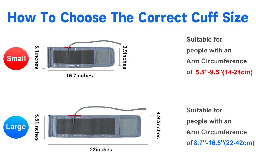 Adjustable Cuff: Our Blood pressure cuff suit adult arm 8.7”-26” (22-66cm) in circumference. The replacement cuff is a breeze to independently calibrate in order to enhance precision