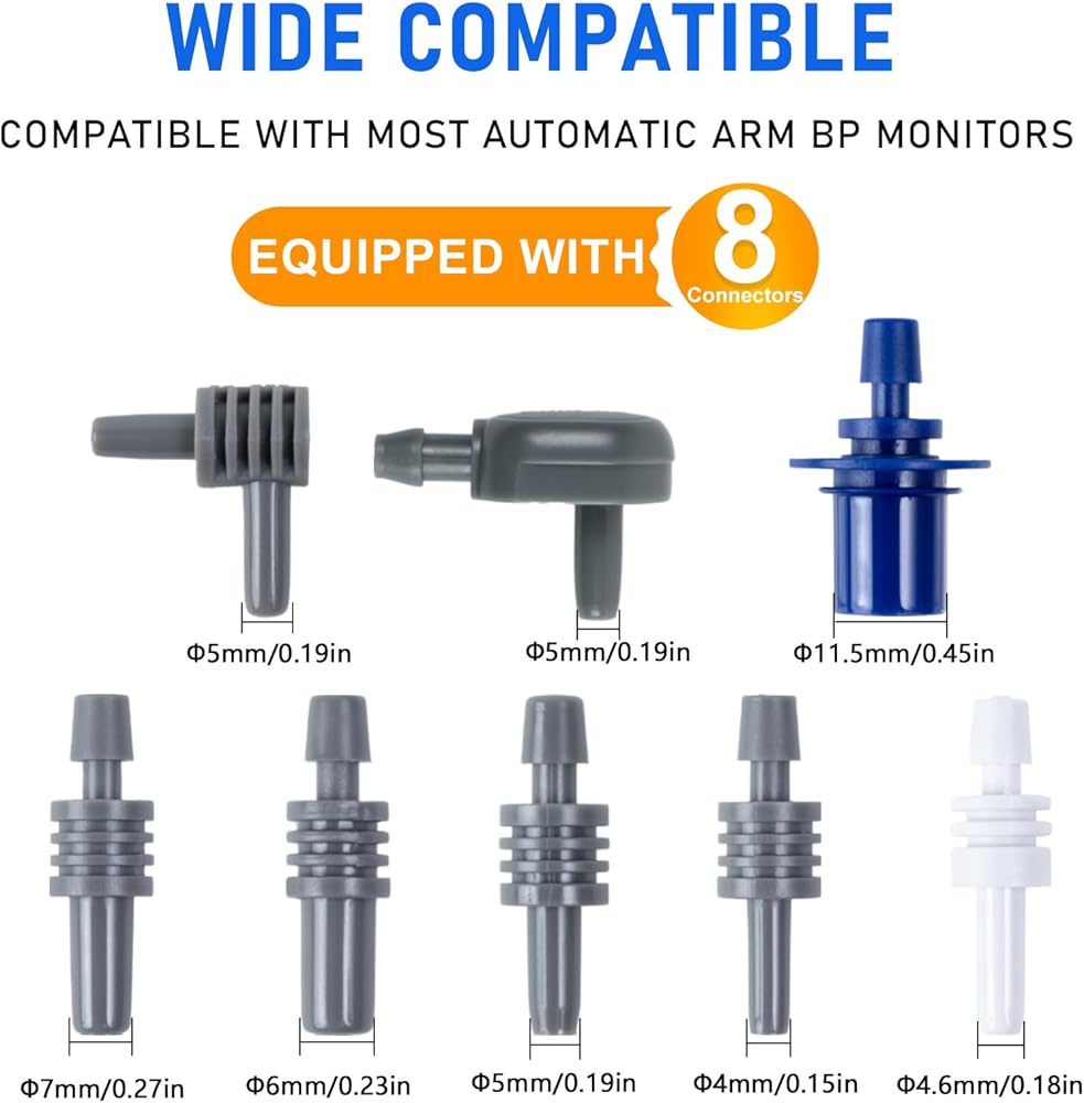 Wide Compatable :Blood pressure cuff upper arm comes with 8 connectors. Replacement Small cuff is suitable for most brands blood pressure monitor .8 connectors are easy to replace (8kinds of extra joint 0.15"/0.18"/0.19"/0.23"/0.27"0.45")