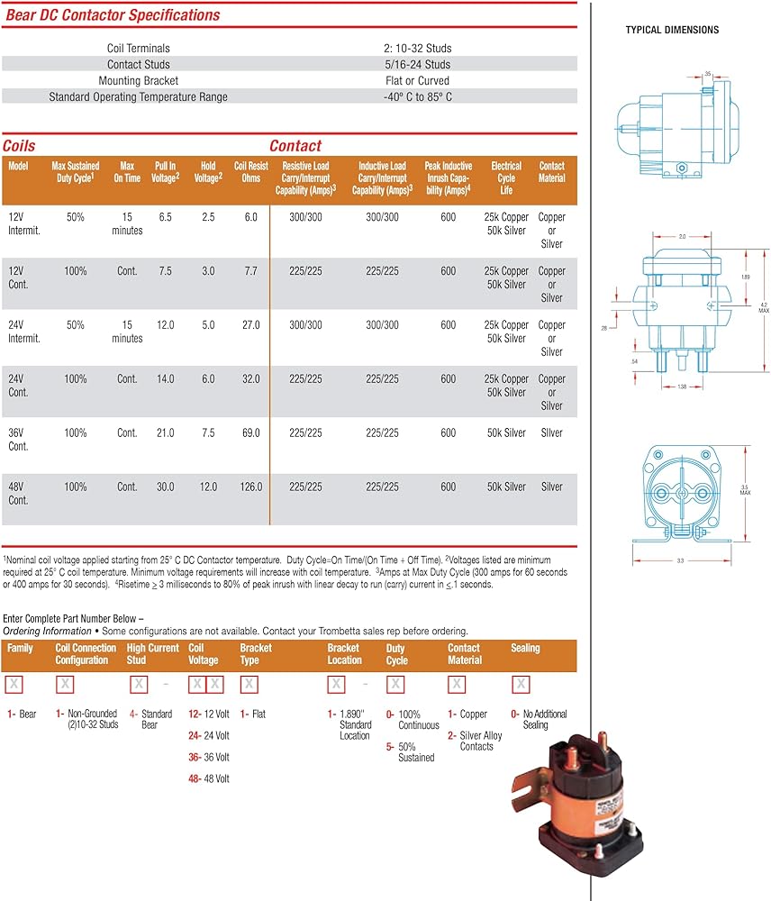 From the Bear DC Contactor Family, the 114-2411-020 earned the name the "Bear" because of its strong construction and high current carrying capability. While it is large in size, the Bear provides an economical solution to high current switching applications.