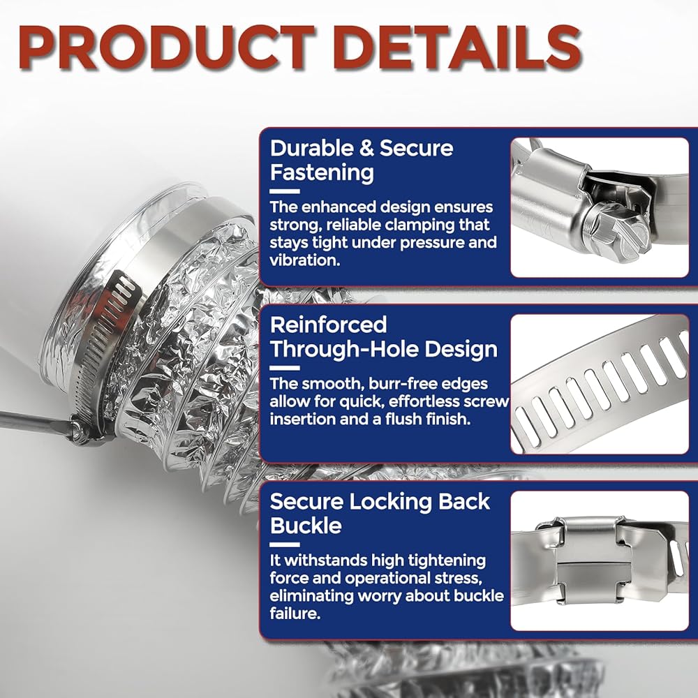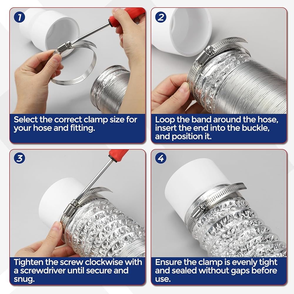 Wide Adjustable Range for Versatile Use: With a flexible and expandable size range, this clamp fits a variety of hose and pipe diameters. Designed as a universal solution, this hose clamp's wide adjustable range makes it an indispensable tool for your workshop or home. It reliably secures connections on numerous projects, including automotive fuel lines, radiator hoses, plumbing under the sink, pool equipment, and air ducts, ensuring you always have the right size on hand.