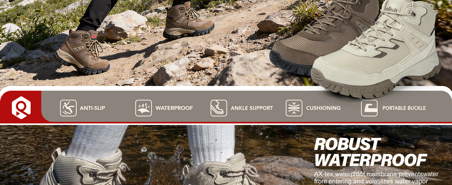 【Superior Traction & Grip】Built with a non-slip rubber outsole and ankle support, Rcord womens hiking boots provide a secure grip on rocky, slippery, and uneven terrain. Perfect for mountain trekking, forest hikes, and rugged trail adventures.