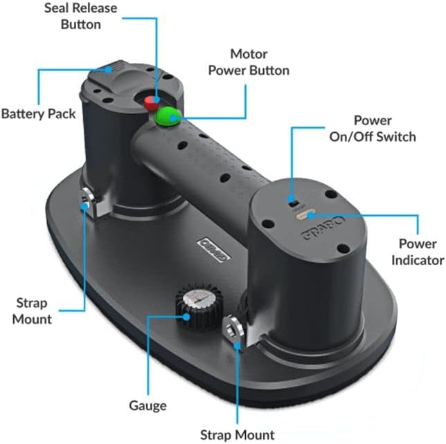 GRABO Nemo (2 Batteries, 2 Seals) - Electric Vacuum Suction Cup Lifter for Wood, Paver, Drywall, Marble, Tile and More (Lifts up to 375 lbs)