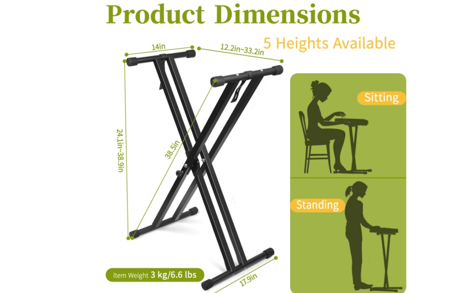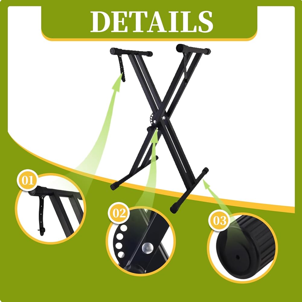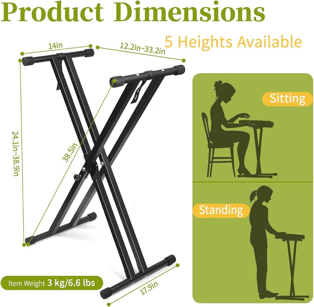 Adjustable Design: X-style frame allows for multiple height positions to achieve optimal playing comfort and ergonomic positioning