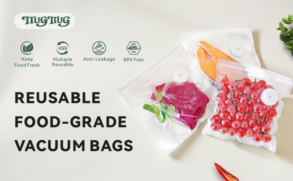 Reusable, Resealable & Easy to Use: Designed with a double-zipper closure, the bags can be securely sealed with the included zipper clip and re-vacuumed after each use.