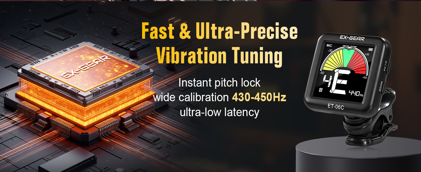 【Fast & Accurate Tuning】High-sensitivity vibration sensor delivers quick, precise tuning for acoustic guitar, electric guitar, bass guitar, and ukulele, even in noisy environments.