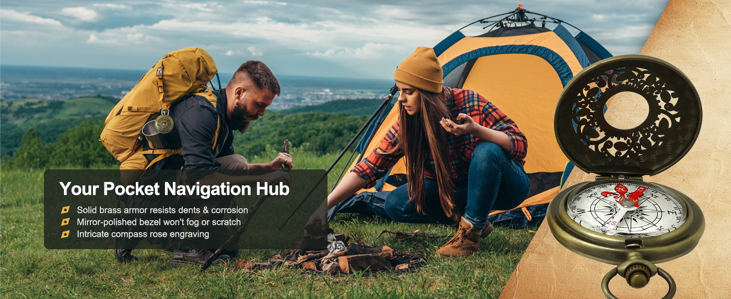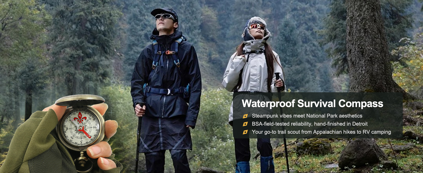 • 【Vintage Brass Scout Compass with Waterproof Design】Antique brass housing resists corrosion, while the liquid-filled capsule ensures smooth needle movement even on bumpy trails. Perfect for boy scouts and outdoor newbies.