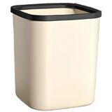 The no-lid design allows more convenient garbage disposal, suitable for high-frequency garbage throwing scenarios such as kitchens and living rooms; the color-block press-ring firmly fixes the garbage bag to prevent slipping and shifting; the smooth surface is easy to clean, with water stains and dirt wiped off immediately; multi-color (beige+black, dark blue+yellow, etc.) and multi-capacity options are available to meet different scenario needs.