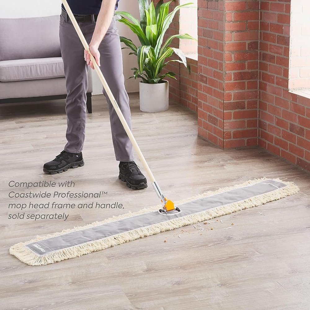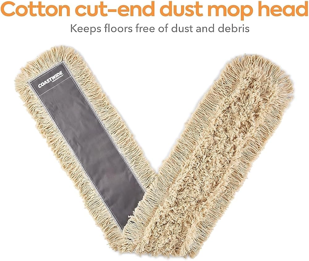 Maintain the shine and cleanliness of your office floors with this Coastwide Professional white cut-end cotton dust mop head. Expand your selection of cleaning supplies with this general-purpose dust mop head. The cotton strands offer high absorbency and effective collection of dust particles and debris, while the reusable design provides easy maintenance and efficiency. This Coastwide Professional white cut-end cotton dust mop head is compatible with a wide range of mop frames and handles for a complete floor cleaning solution.