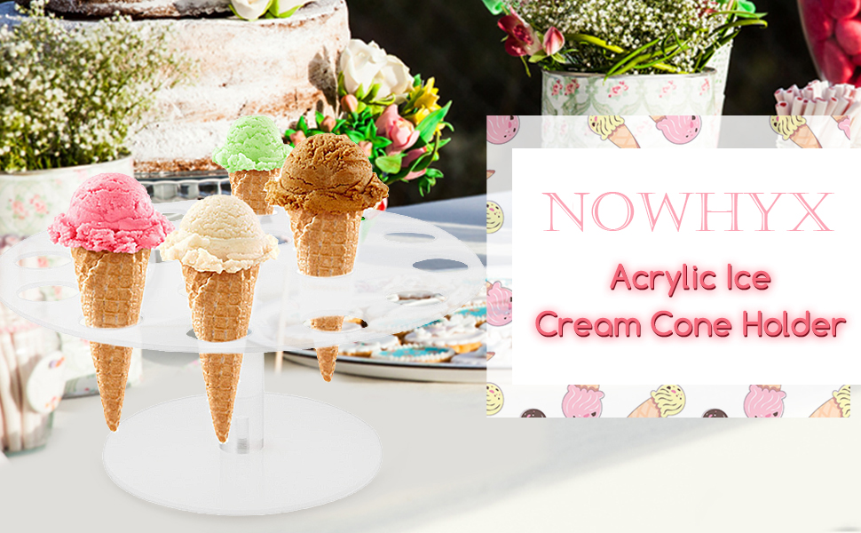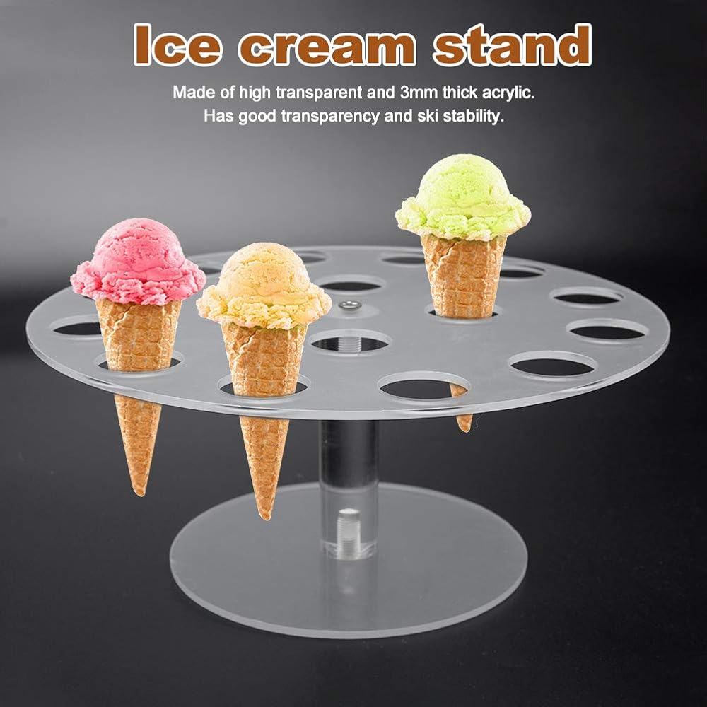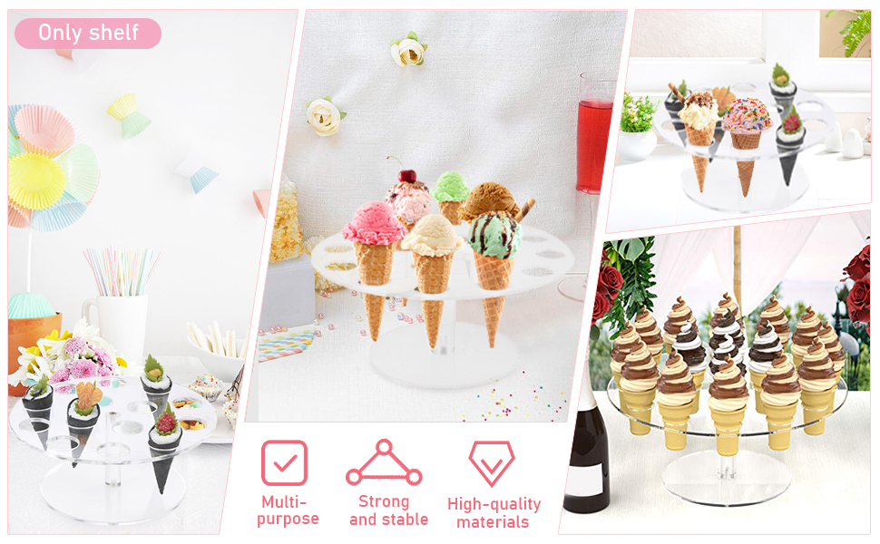 Strong and Durable: our products are made of acrylic material, with transparent and strong characteristics, will not easily change the shape, strong and durable design, so that the ice cream cone will not shake, flat packaging, easy assembly and disassembly, easy to carry