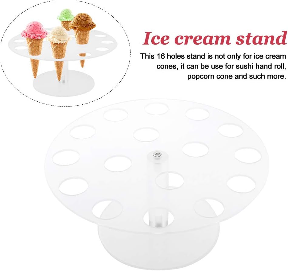 Ice Cream Cone Holder, 16 Holes Acrylic Stand for Displaying Waffle Cones, Cupcakes, Hand Roll Sushi, Popcorn, Food Display Stand for Party Birthday Wedding Christmas