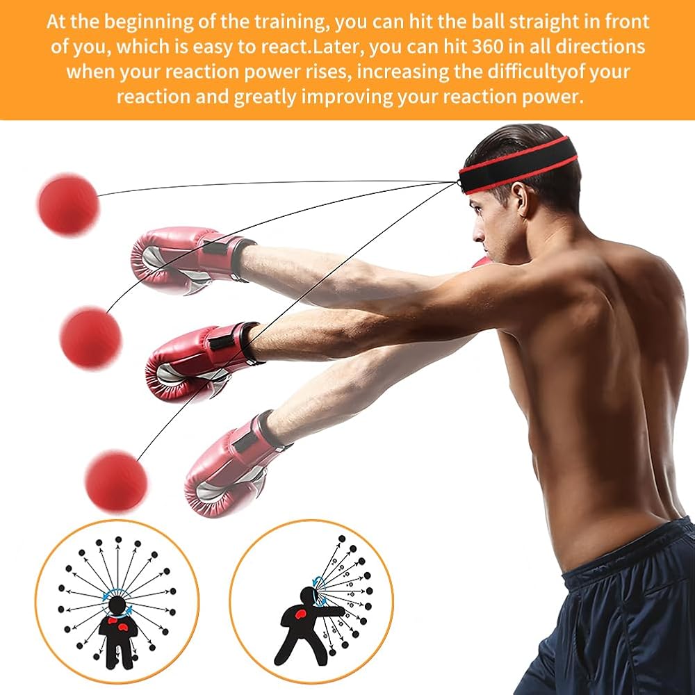 Boxing Reflex Ball Headband Set - Includes 4 Different Boxing Balls, 2 Adjustable Headbands, 4pcs Spare Ropes and 2pcs Protective Gloves, for Adults Boxings Equipment