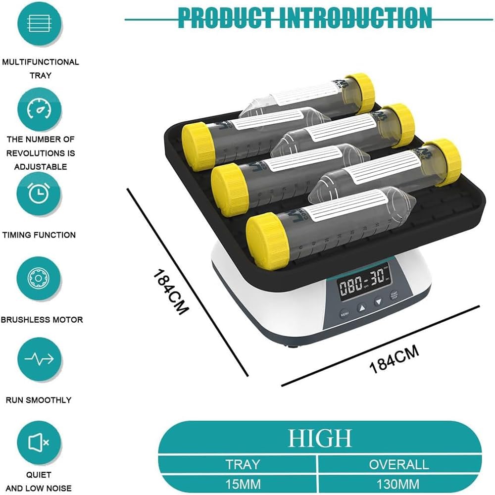 - 3D gentle rotation, and adjustable rotation and mixing speed.