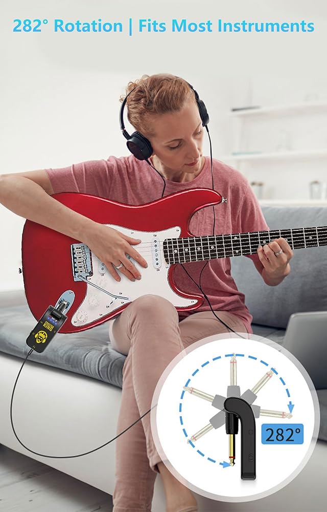 🎸 Unbeatable Portability & Versatility Our mini guitar amplifier features an ultra-compact build, letting you play anytime and anywhere with just a pair of headphones and a phone. Designed with a 180° swivel plug, this travel-friendly amp is widely compatible with guitars of different jack positions for true versatility.