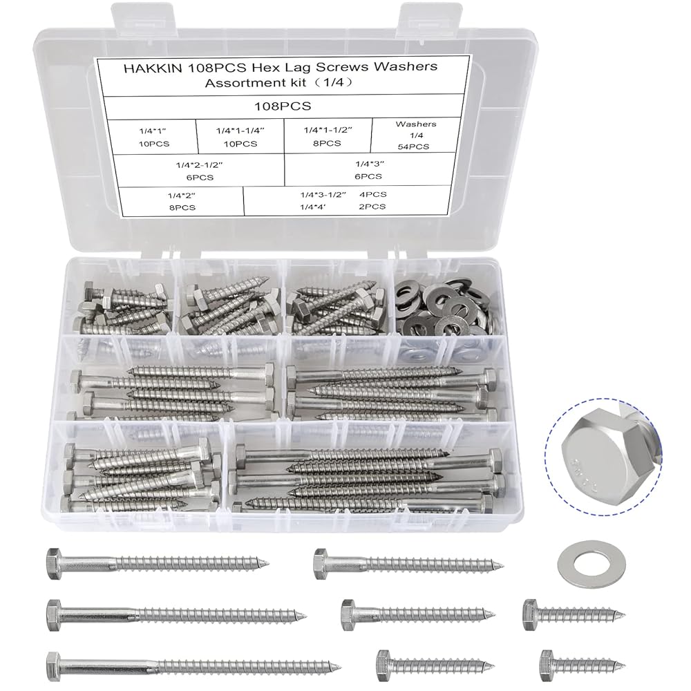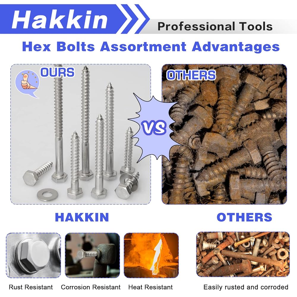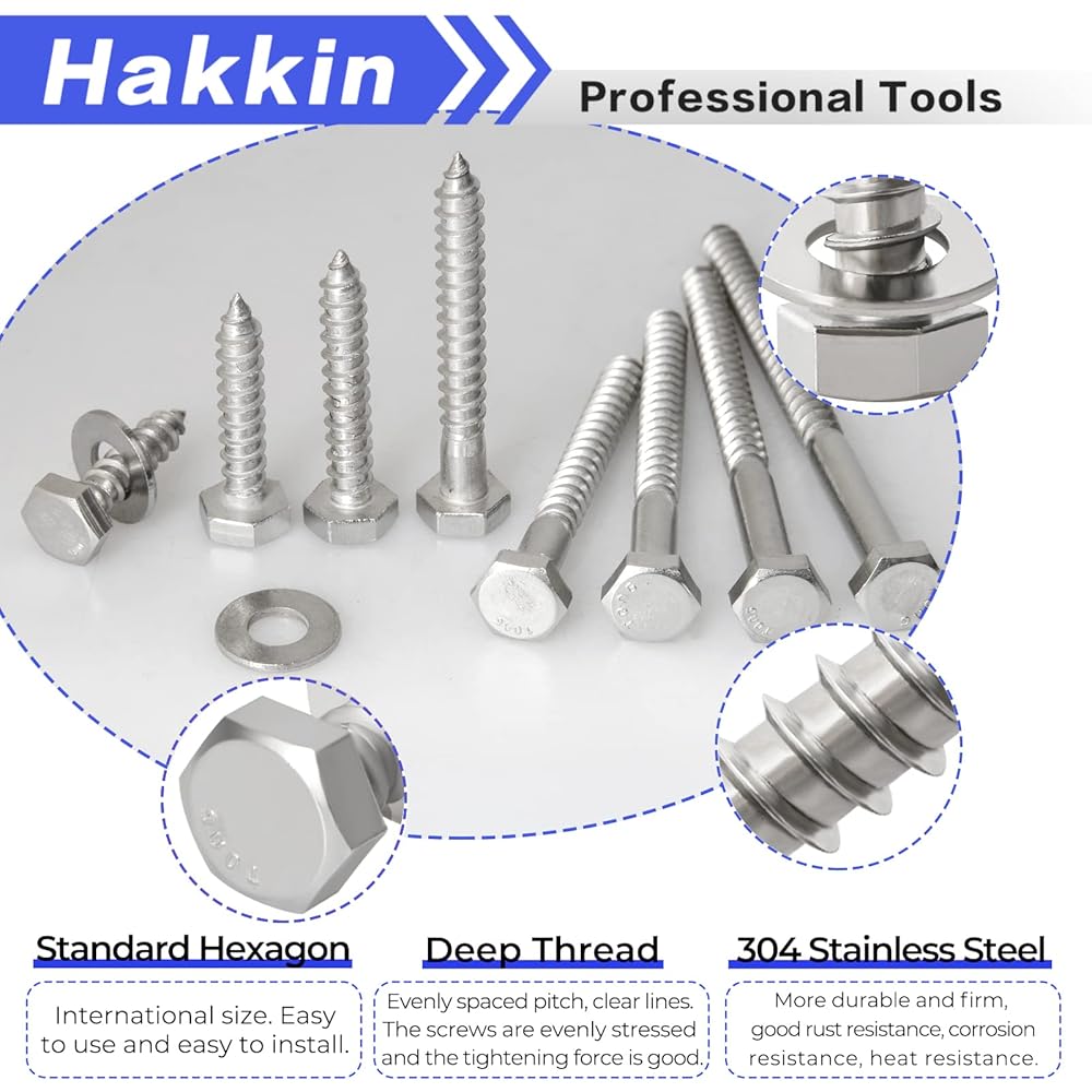 5.【Guarantee in Hakkin】Hakkin hex lag screws undergo rigorous inspections to ensure they are 304 stainless steel and the right size you want; Hakkin is a professional fasteners seller brand. We will do our best to provide you a pleasure shopping experience
