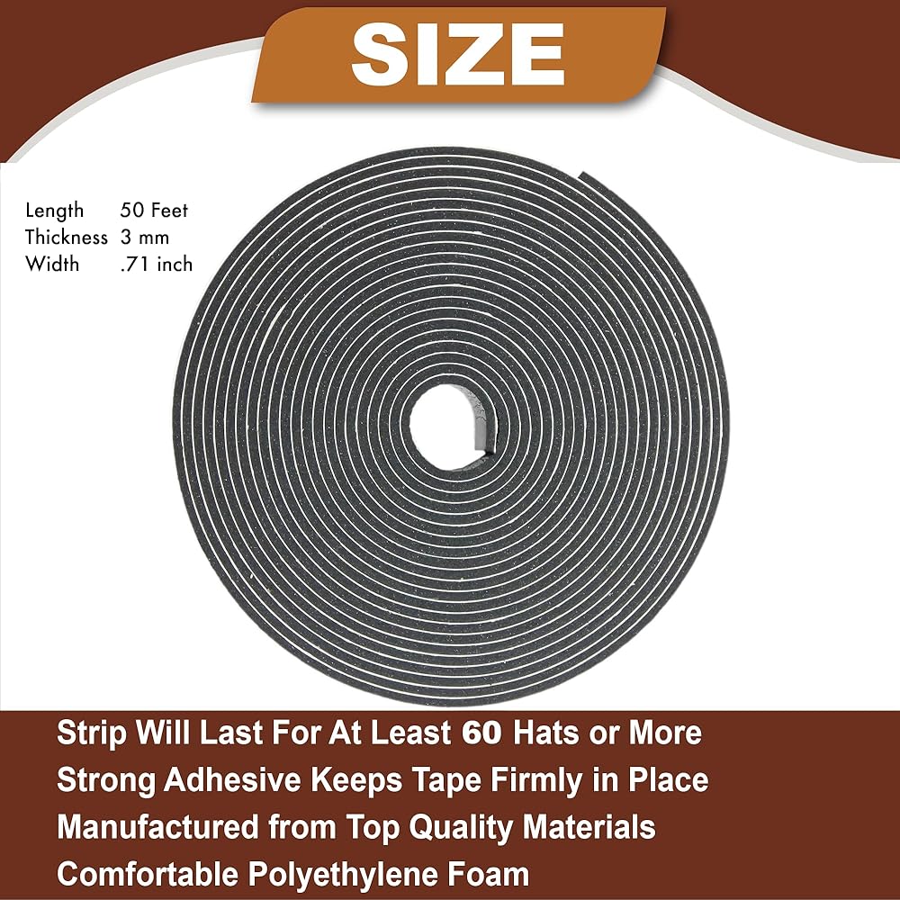 • . 🎩 Instantly Reduce Hat Size for a Perfect Fit – Foam tape gently fills space for a snug, secure fit. Ideal for cowboy hats, fedoras, baseball caps, and more.