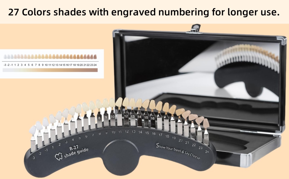 Teeth Shade Guide 3D R-27 Tooth Whitening Shade Chart with 27 Colors for Dentist Tracking Teeth Whitening Course