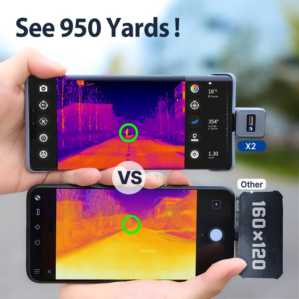 【See Farther, See Clearer】The X2 thermal imager features a 950-yard detection range. Perfect for outdoor monitoring, night inspections, and building or structure surveys, it allows you to detect heat signatures and movement over 250 yards away.