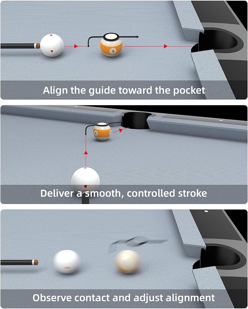 Visual Aiming Reference for Better Shot Alignment Designed to provide a clear visual reference, this billiard aiming aid helps players better understand contact points and shot angles. By making aiming concepts more visible, it supports consistent alignment during straight shots, cut shots, and bank shots—without changing your normal stroke or setup.