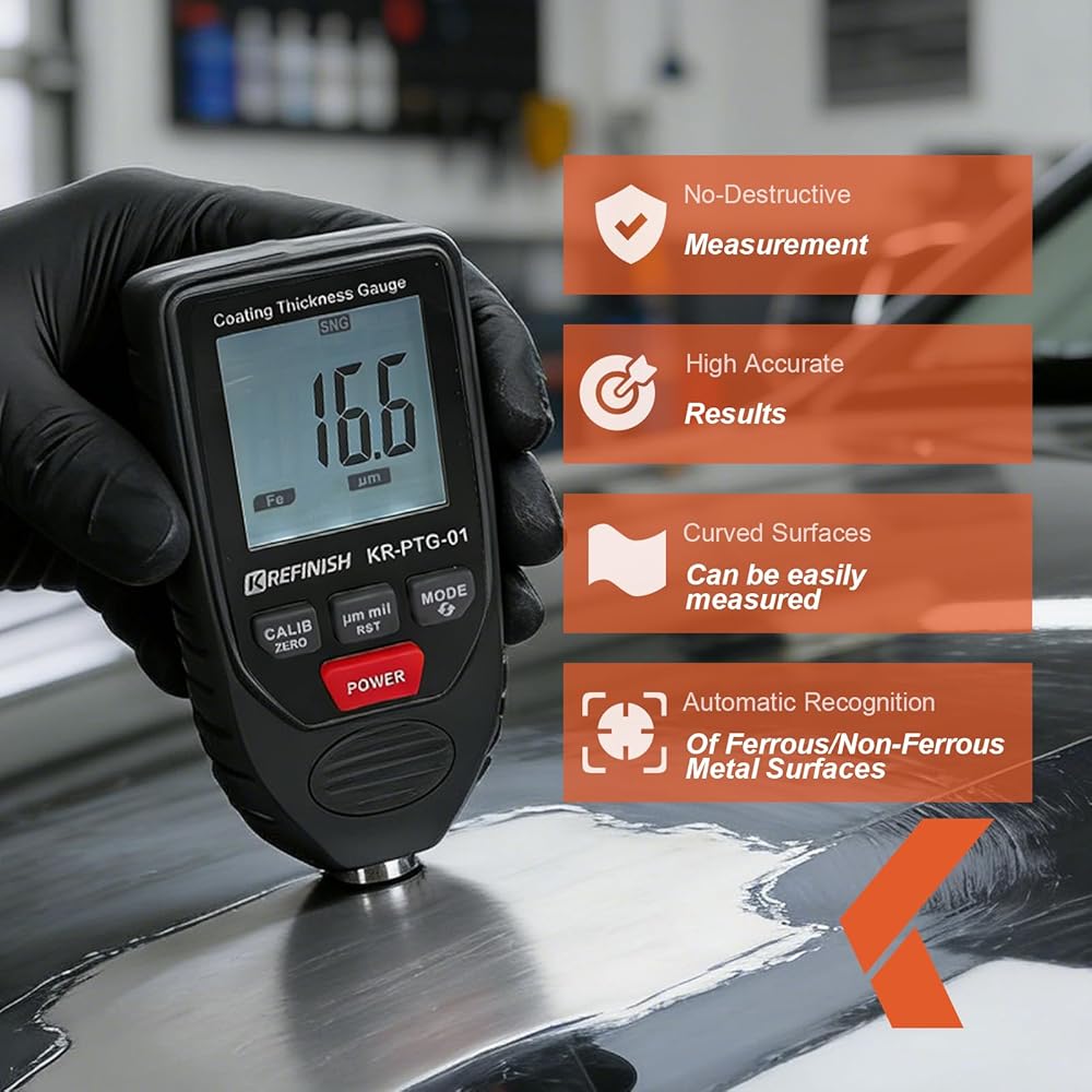 Wide Application: It is used to non-destructively measure the thickness of coatings and paints. Ideal for automotive paint inspection, powder coating checks, and metal surface finishing. Especially useful in the used car market to detect hidden repairs and avoid overpaying. Note:It cannot be used on non-metallic materials such as plastic, fiberglass, or wood.