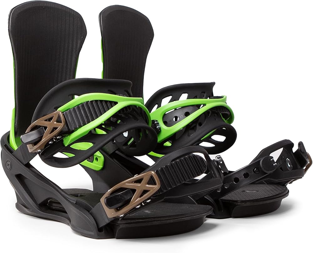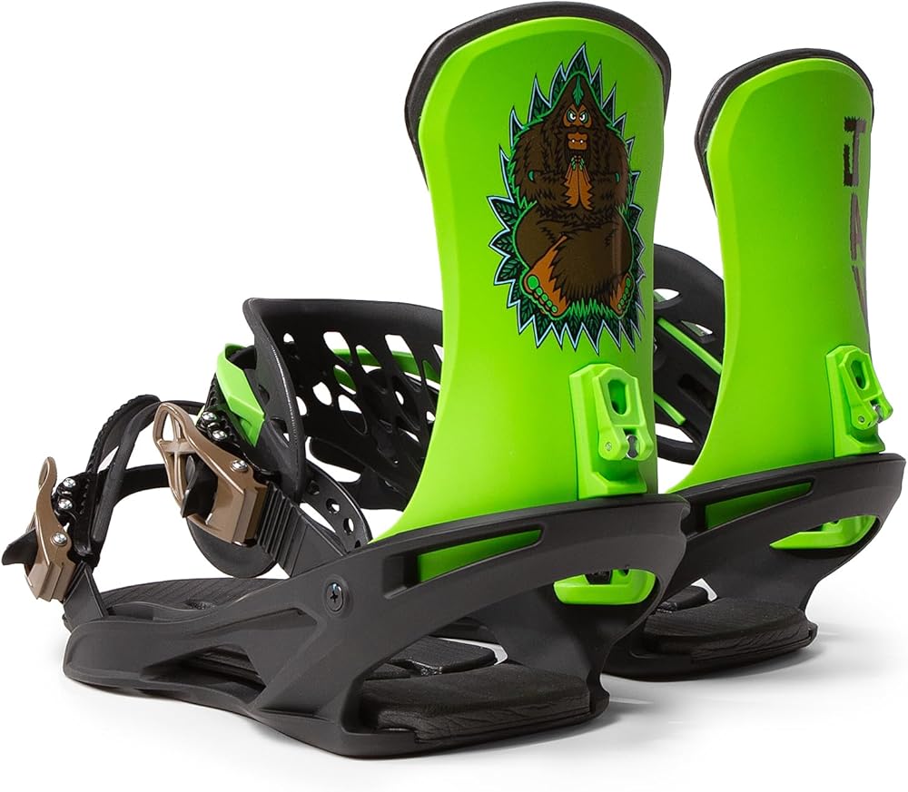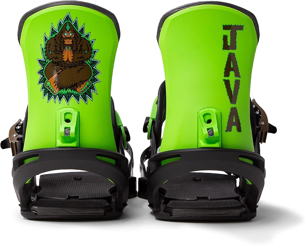 Javatron Dream Machines / Java Snowboards / Fuzz Pedal Snowboard Binding / Gallery Edition by Bigfoot. Lightweight and super durable snowboard binding that is easy to get in and out of. Has easy to adjust forward lean, adjustable toe and ankle straps with easy to grab ratchet closures. Padded Hi back for comfort and padded under foot helps absorb vibration for a smoother ride. Ankle strap can tuck into receiving end for cleaner look on top of foot. 4 x 4 disc plate for adjusting stance angles. Includes mounting hardware. This limited edition version of the Fuzz Pedal binding features artwork by Bigfoot One. Available in 2 sizes, based on boot size - Medium (US unisex size 7-10) , Large (US unisex size 9-14)