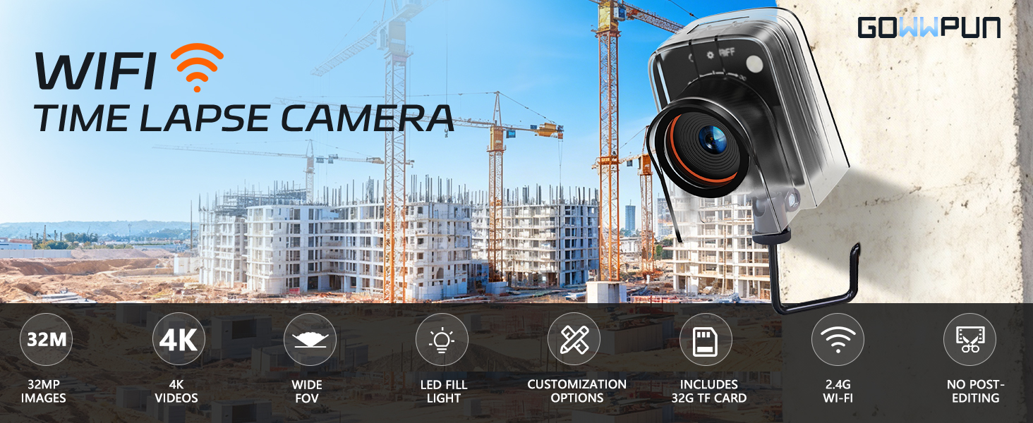 Time Lapse Camera WiFi Construction Outdoor,4k Timelapse Video Camera Captures Plant Growth,City Traffic,Gifts Idea,Nature,Weather Records,110°Angle View,6 Months Battery Life,Include TF Card