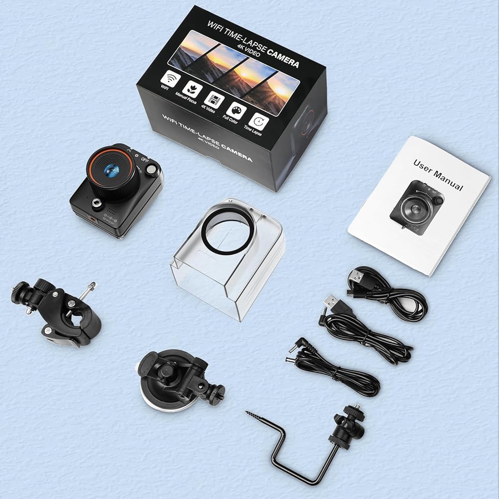 【Waterproof for outdoor use】Time lapse camera construction Equipped with a rain cover and IP66 protection rating, it is waterproof and dustproof, sufficient for outdoor construction time-lapse shooting. It is also suitable for indoor use and can be mounted with camera clamps, calipers, nails, or suction cups to meet diverse mounting needs and unleash your shooting perspective.