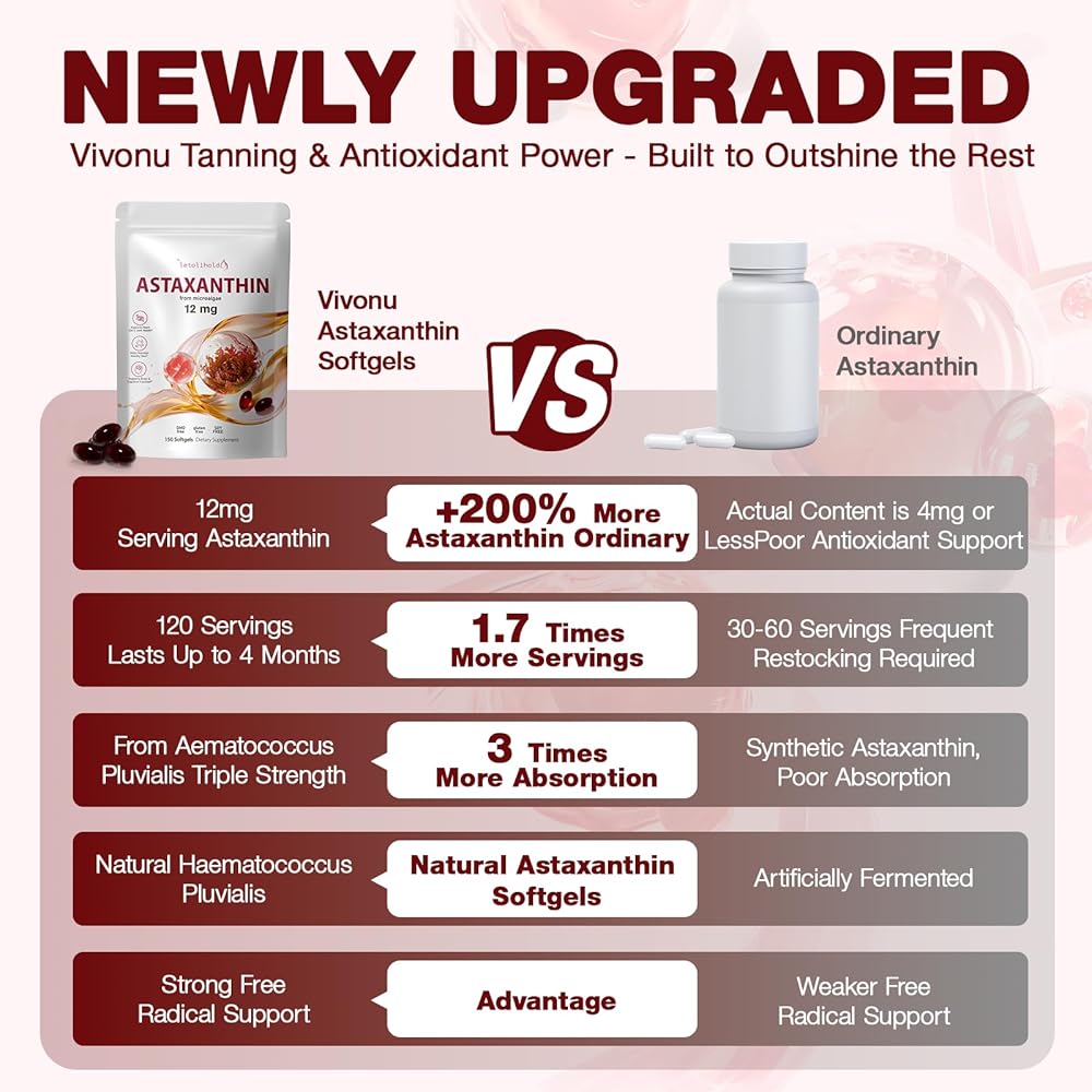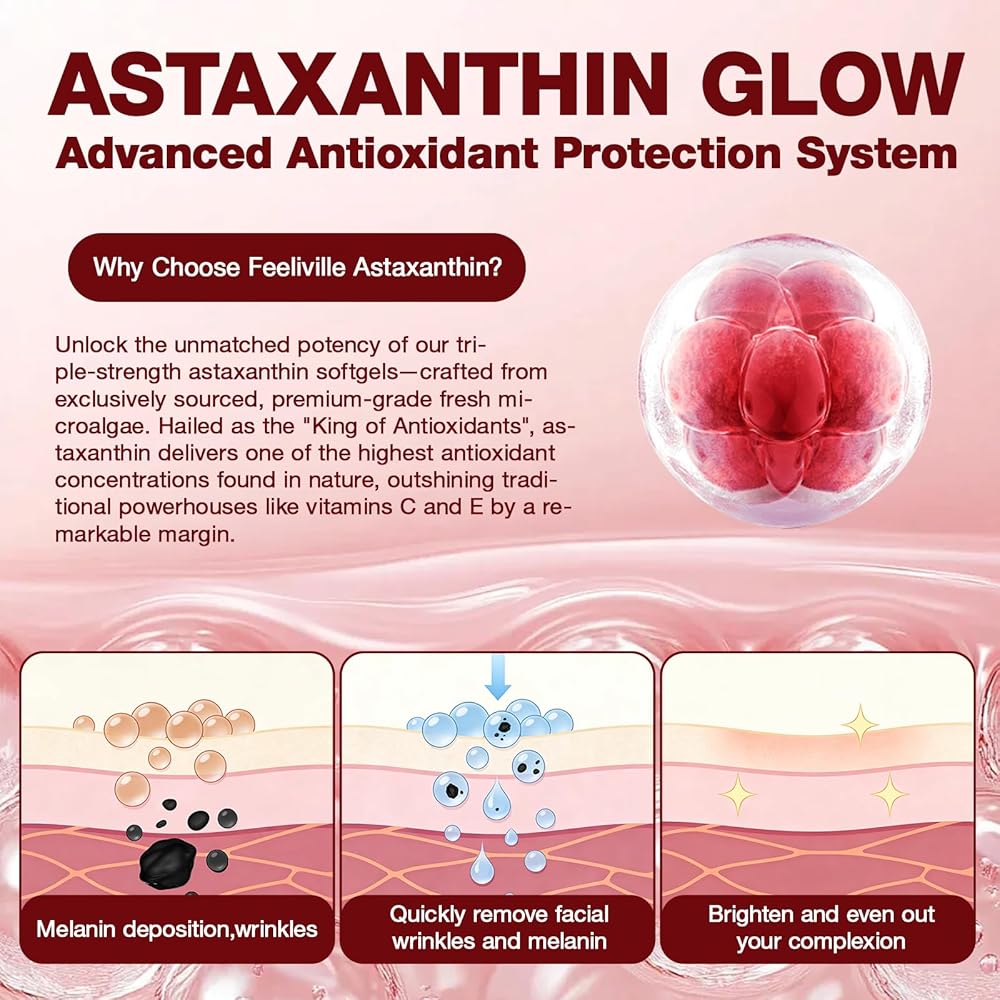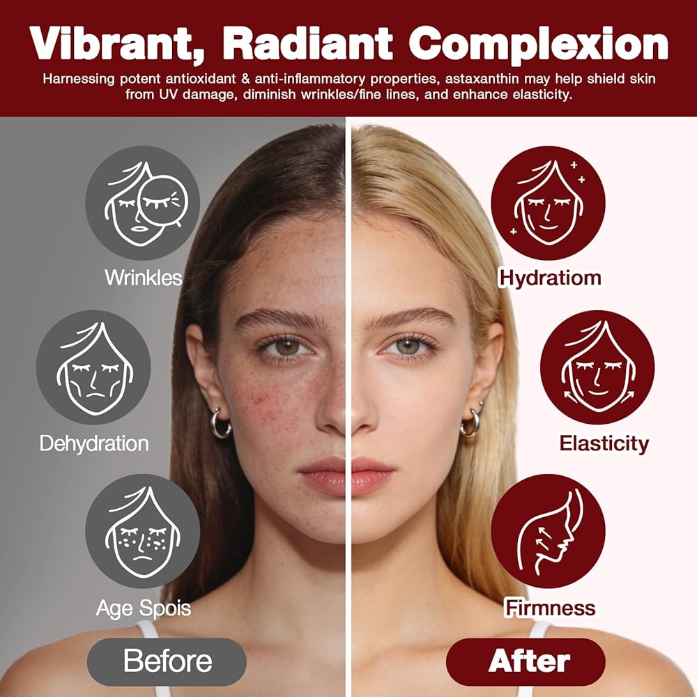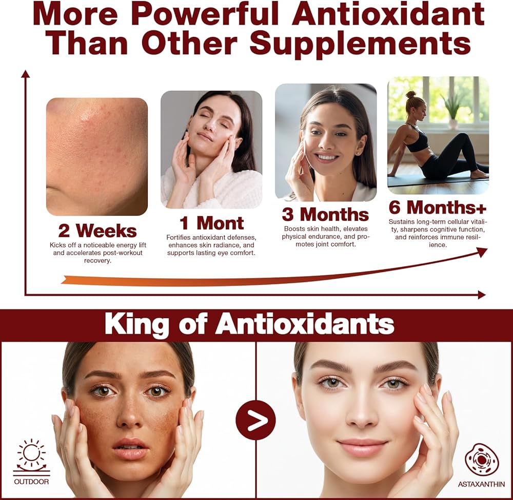 【Supports Overall Wellness】Astaxanthin supplements support eye health, skin health, and joint health. It provides antioxidant support to help promote daily vitality from within
