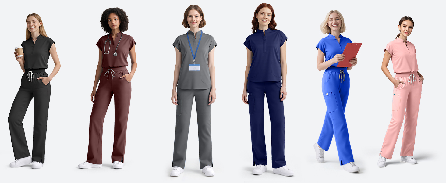 The fabric is wrinkle-resistant, machine washable, durable, moderately stretchy, breathable, easy to clean, and non-pilling, making the women's scrub set easy to wear and very comfortable even for long hours of work and exercise.