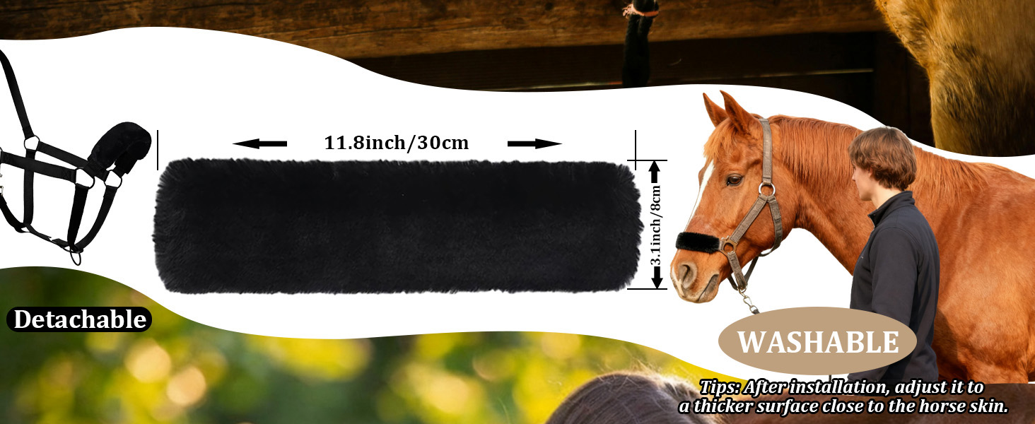 🧼【Easy to Clean & Reusable】The nose and ear fleece band for horse halter is machine washable and retains its softness, thickness, and shape even after repeated cleaning. Simply remove and wash to keep your horse's gear clean, fresh, and comfortable with minimal effort.