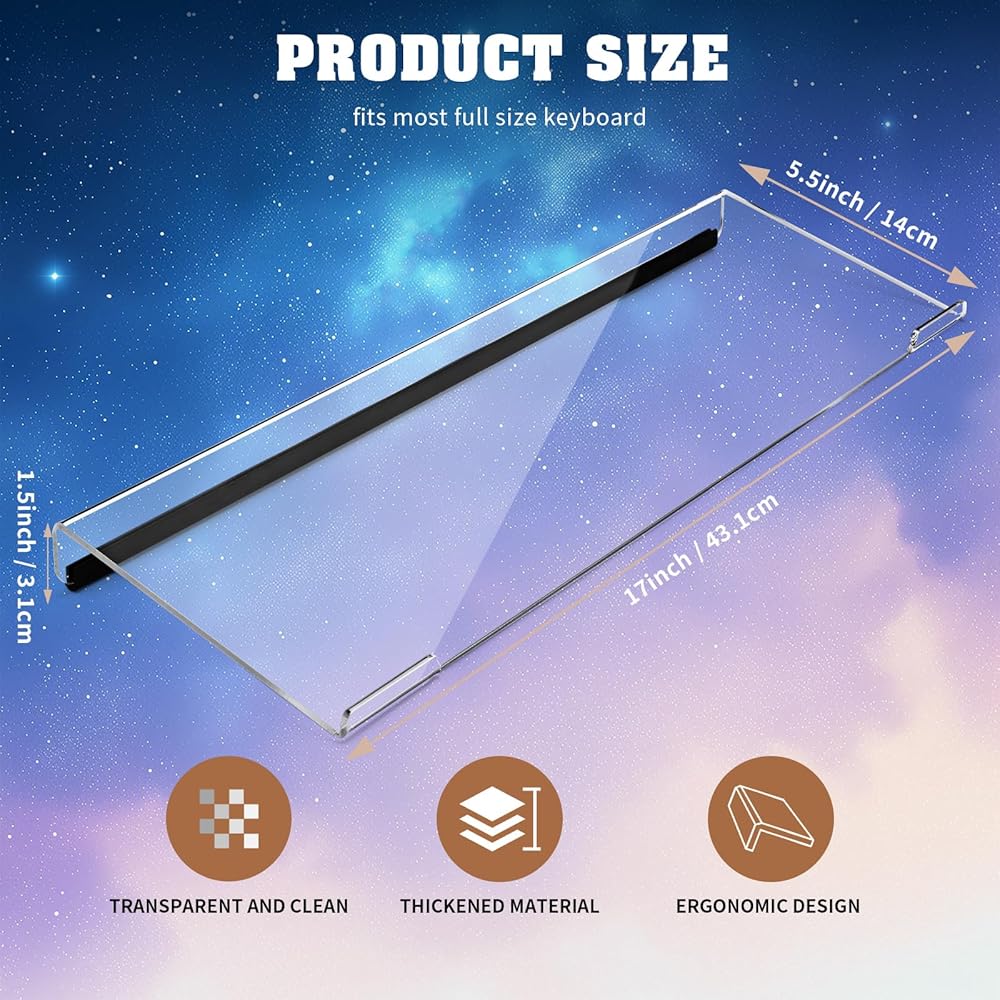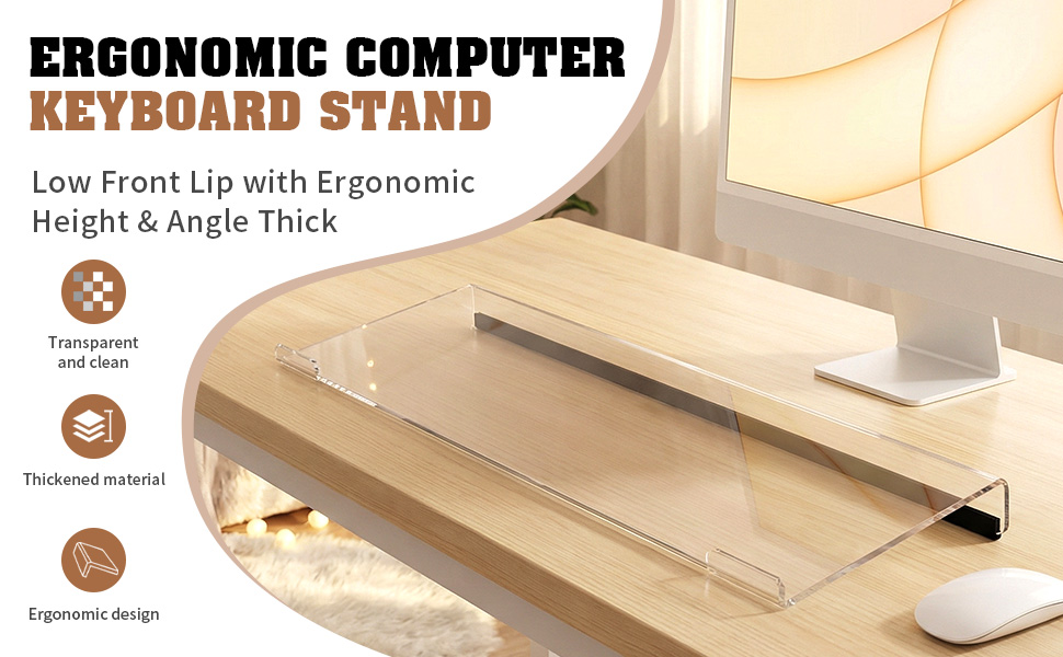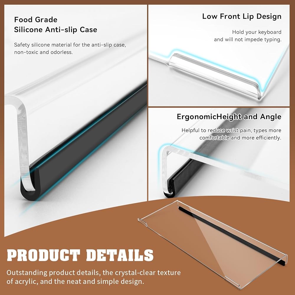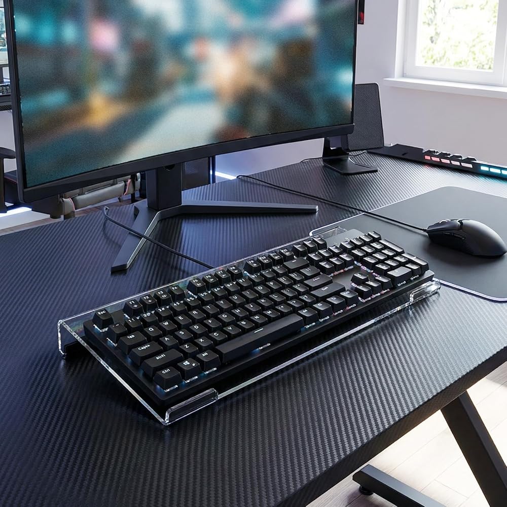 【Durable Acrylic Material】Crafted from solid acrylic, this computer keyboard stand is both sturdy and stylish. Its transparent design adds a modern touch to any desk while providing reliable, long-lasting support for daily use.