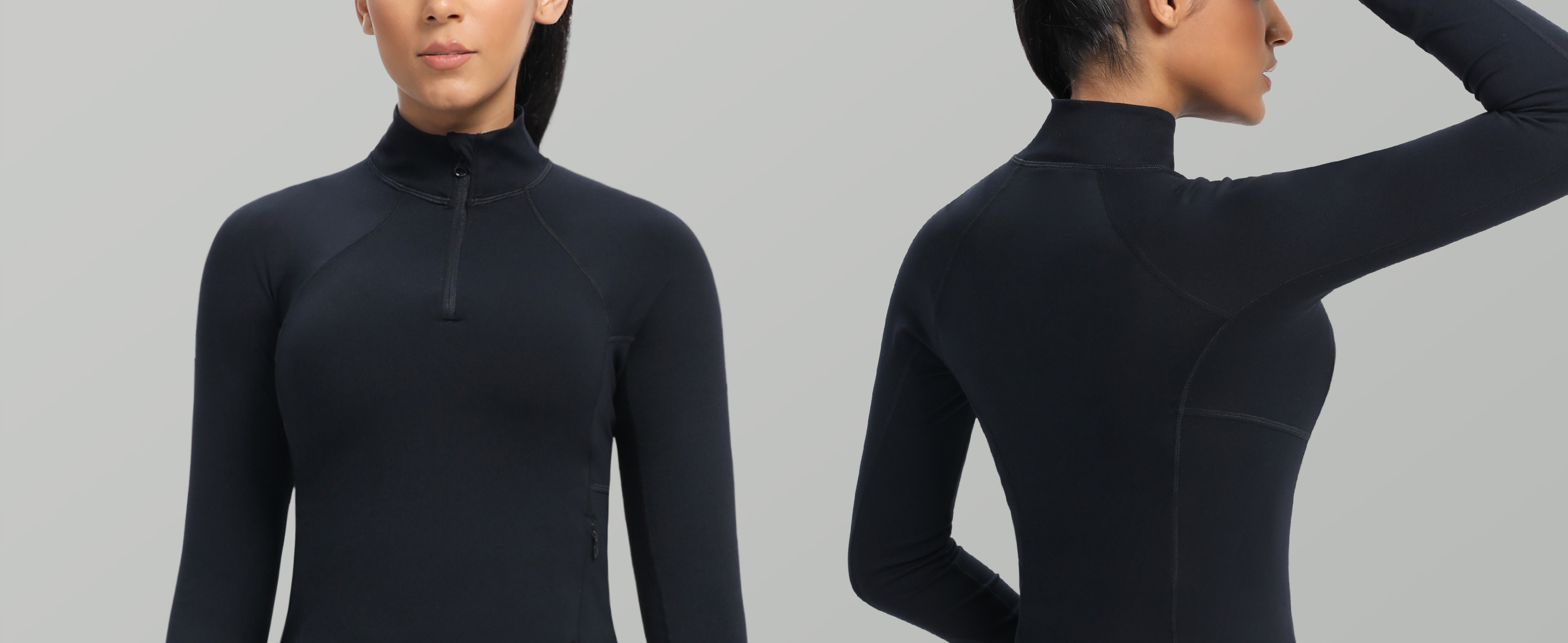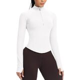 Running Jackets for Women: Quarter zip front with stand collar for extra coverage. Zipper garage keeps chafe in check. This long sleeve workout tops for women keep you warm during intense cold-weather activities.