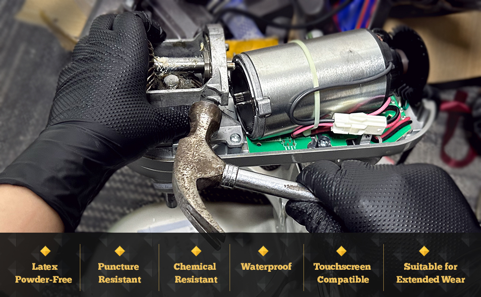 THOR GRIP DIAMOND TEXTURE: Fully textured fingers and palms with arrayed raised diamond patterns provide 60% more gripping power than regular nitrile gloves, yet with good dexterity for handling small objects and tools even wet or slippery.