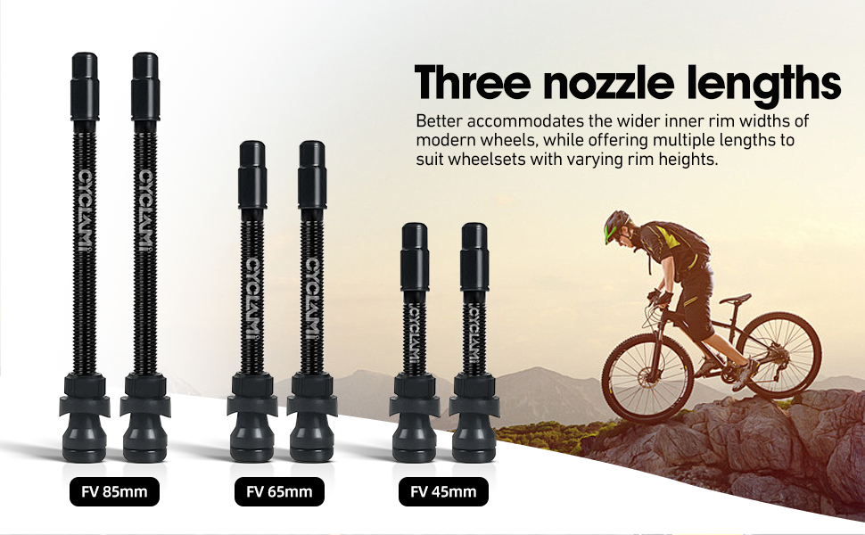 Wide Application: Our tubeless valve is a perfect fit for road bikes, gravel bikes, and mountain bikes.Offered in 3 different-45/65/85mm lengthssuitable for most wheelsets and other tubeless rims.