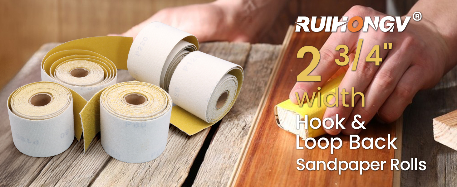 2-3/4 Inch Longboard Sandpaper Roll, Total 25 Yards Hook and Loop Sanding Paper 80 120 180 220 320 Grit, Continuous Rolls for Automotive, Woodworking and Hand Sanding Blocks