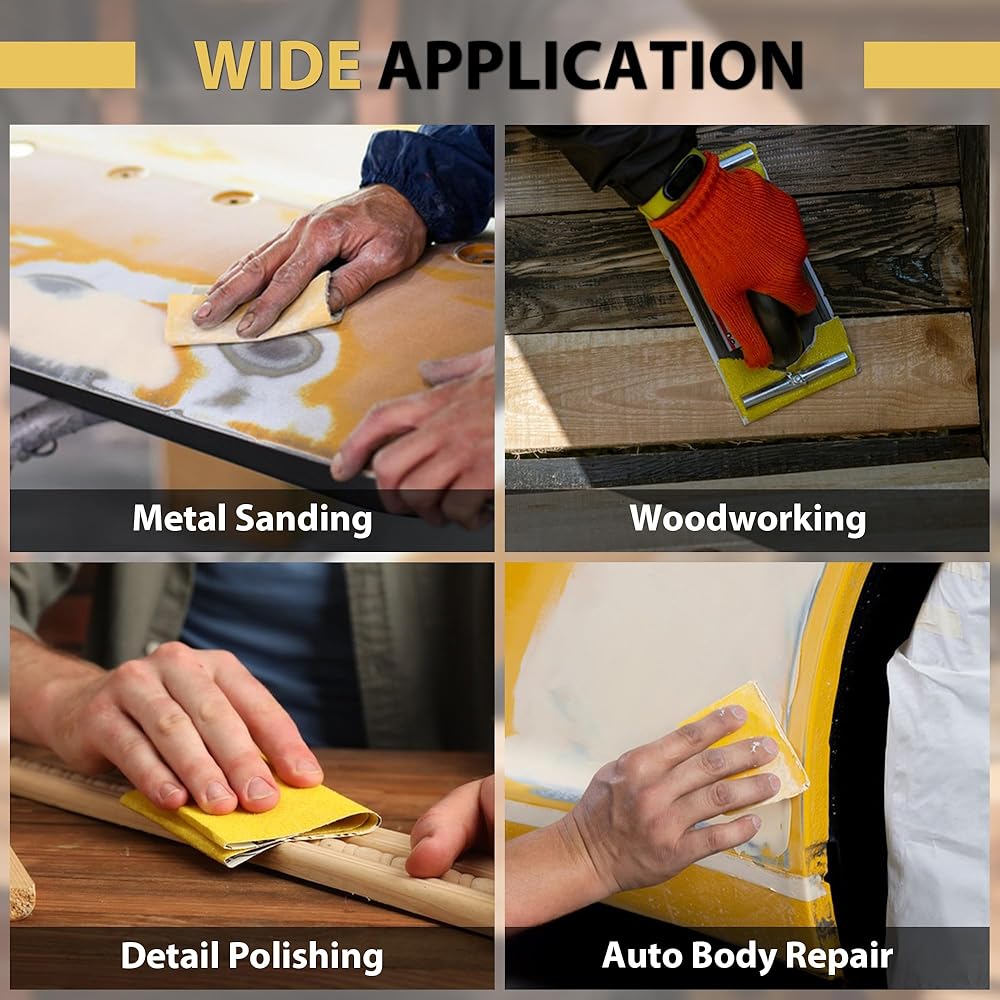 WIDE APPLICATION: Suitable for construction, woodworking, auto body repair, and furniture restoration. Handling various materials including wood, metal, plastic, and paint surfaces for sanding, polishing, and edge cleaning. Its flexibility conforms to vehicle contours, tackling details effectively