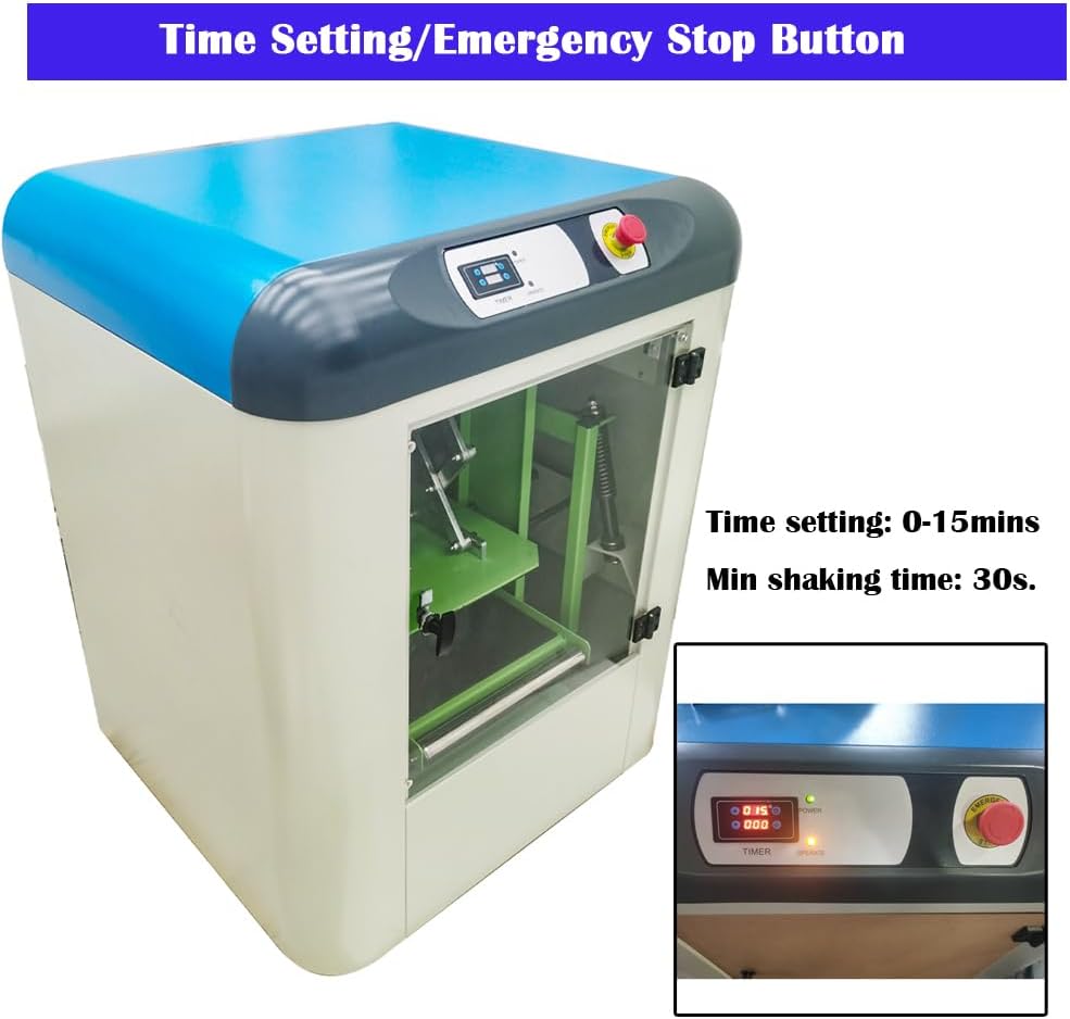 Automatic Alarm Signal Function: Equipped with an advanced automatic alarm timer, this paint shaker ensures precise control over the mixing process. Upon reaching the pre-set time, the mixing machine automatically stops operation. Additionally, for enhanced safety, the mixer will automatically stop if the door is opened during use.