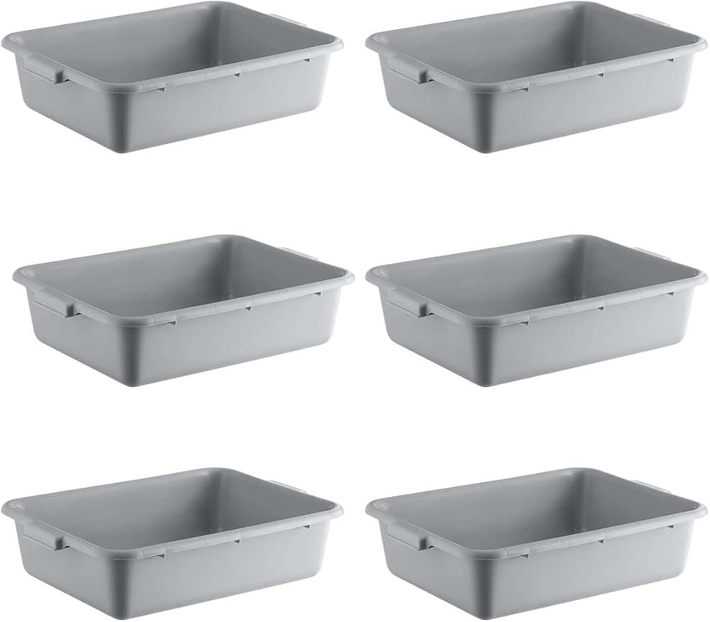 6.5 gallon tubs (20" × 15" × 5") – low-profile depth for quick table turns.