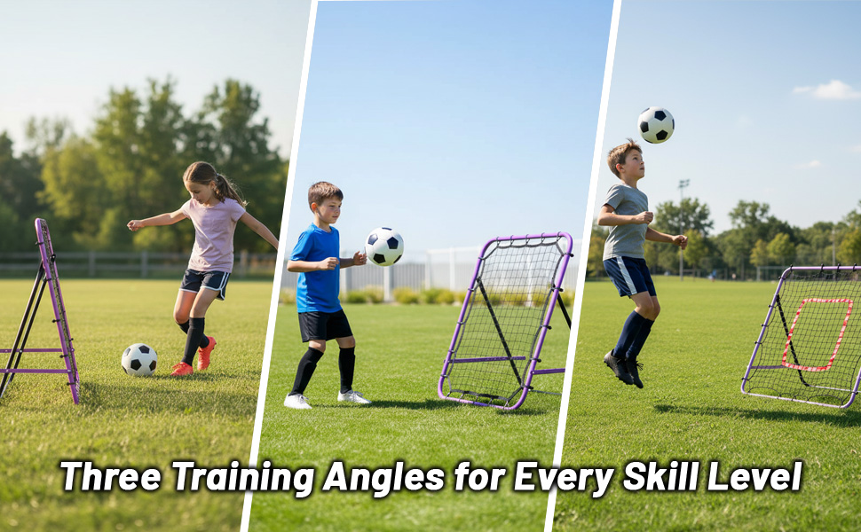 Adjustable 3-Angle Practice Modes:Switch between three training positions to master ground passes, high lobs, volleys, and shooting drills. Helps players improve accuracy, timing, and overall technique.