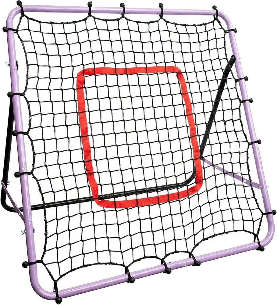 Soccer Rebounder Net, Adjustable Angle Multi-Sport Training Goal for Kids & Teens Ages 3+, Portable Backyard Practice Net with Lavender Frame & Red Target Grid