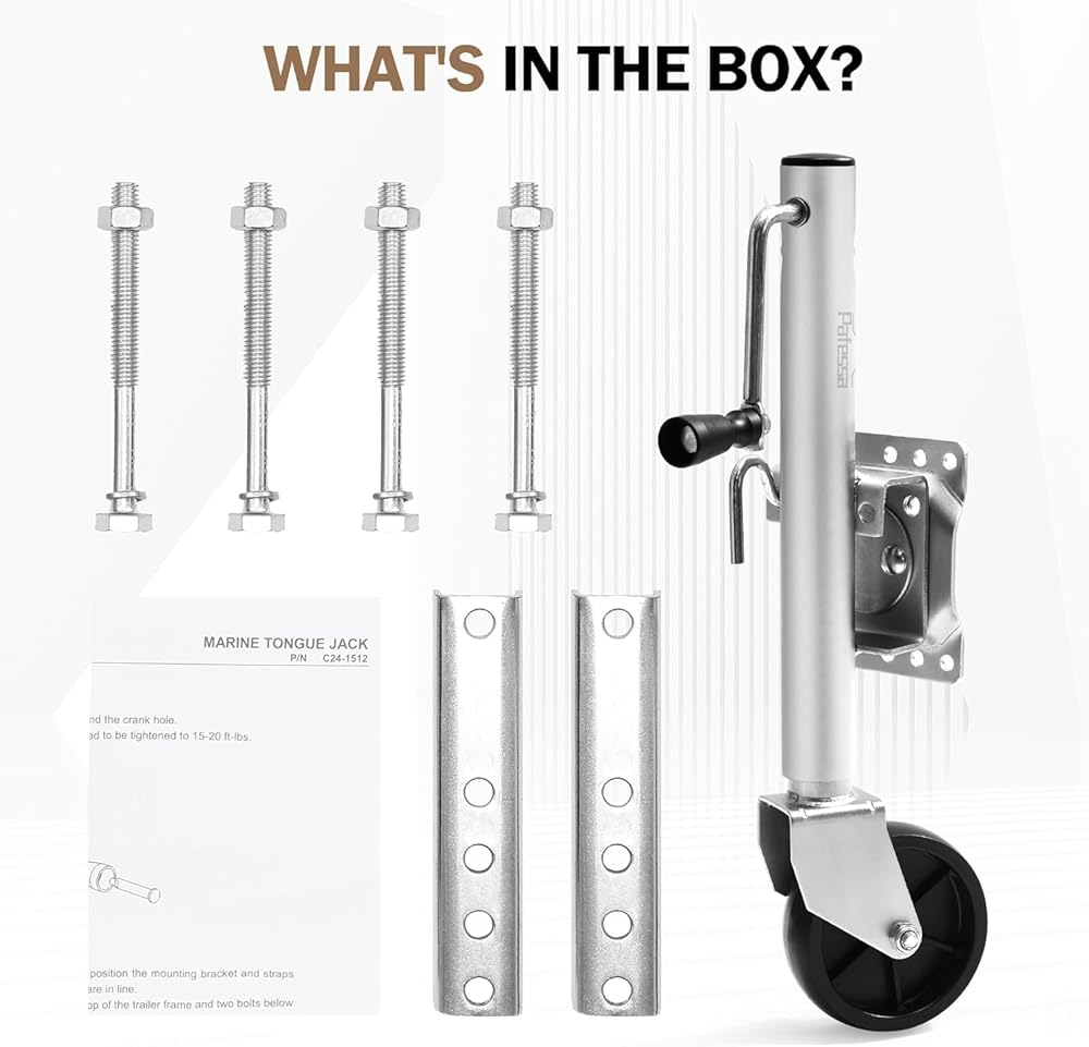 [Easy Installation] Pafessa Sidewind Boat Trailer Jack features a reinforced swivel mounting bracket and fits up to a 3”x 5” trailer frame. The package includes a removable grip, all necessary mounting hardware and instructions.