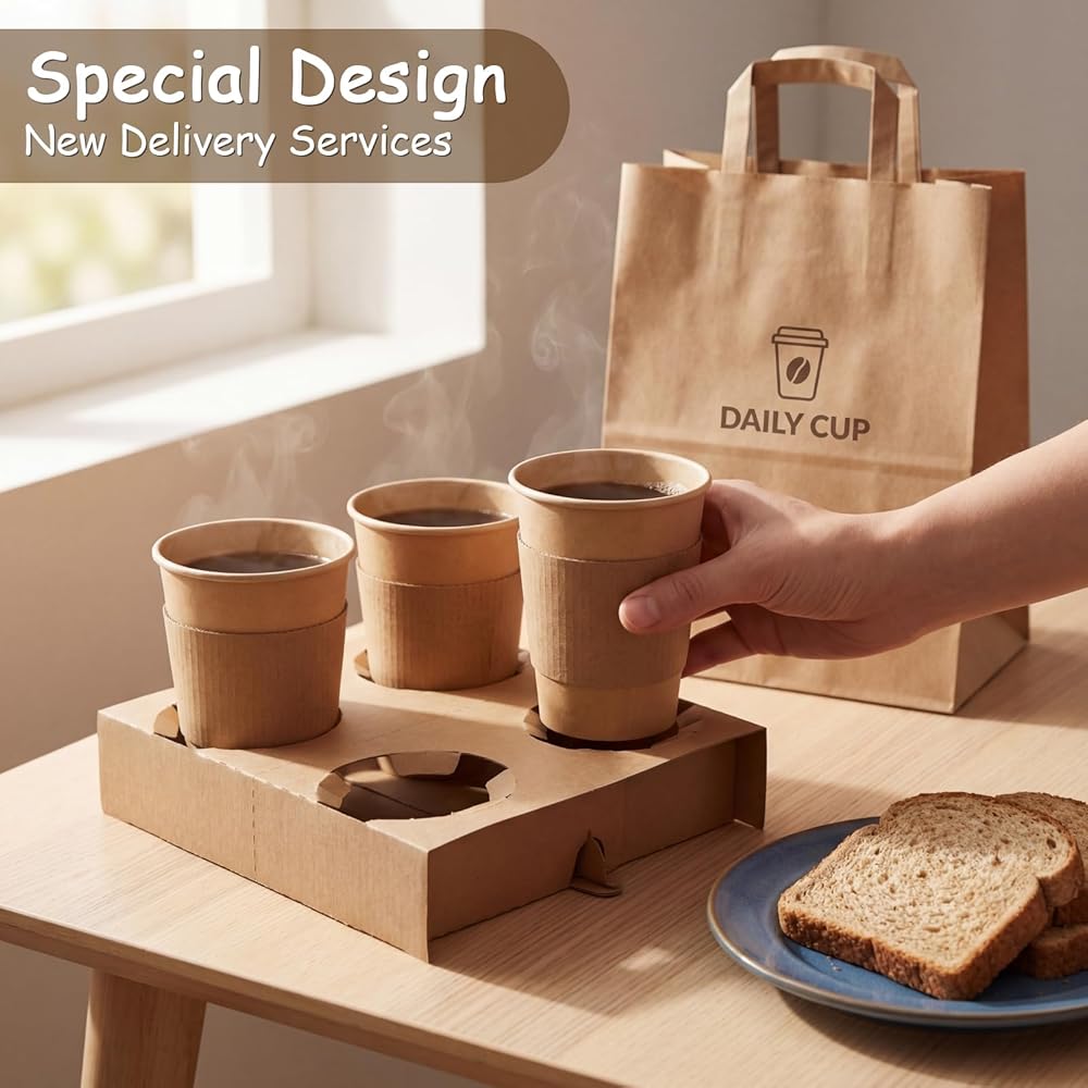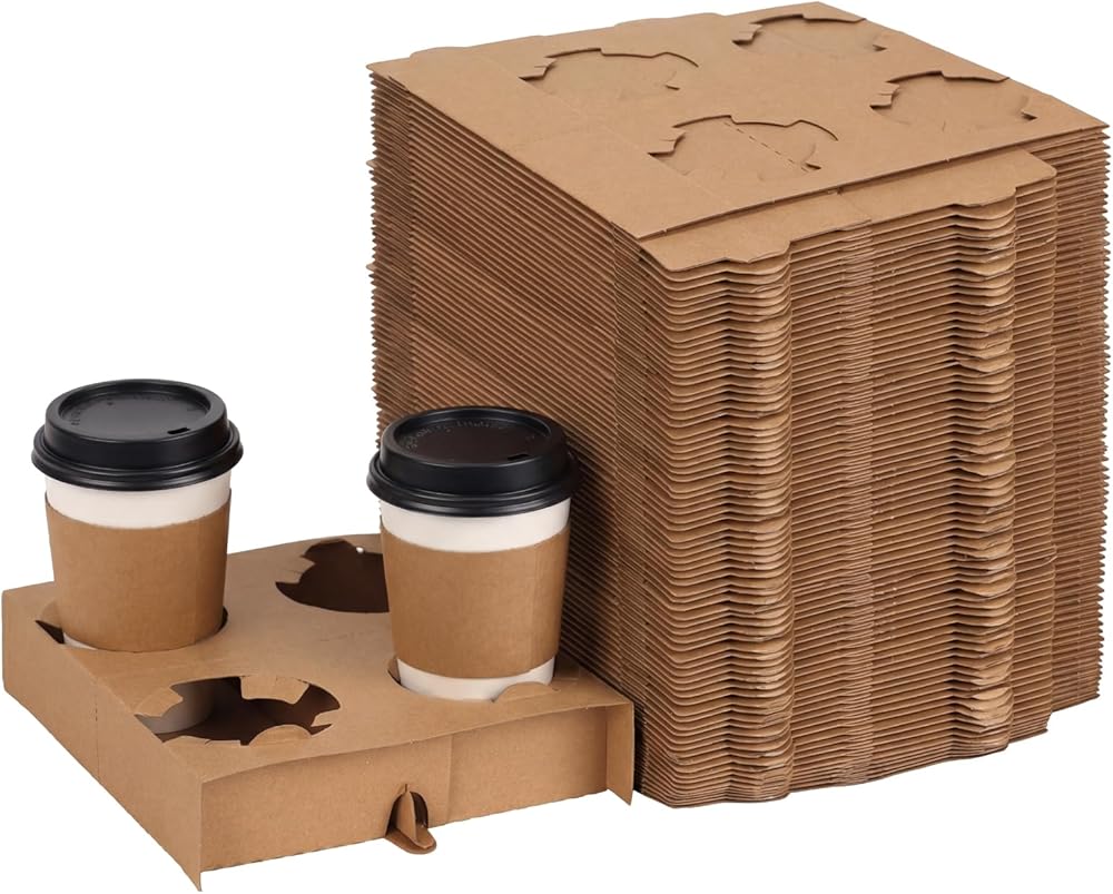 - 4 Cup Disposable Carrier Trays: Convenient carrier trays designed to hold four cups securely for easy transportation and delivery