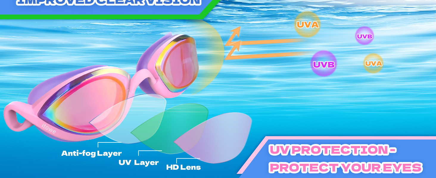 PRO RACING GOGGLES & GLARE-FREE: The ITOWE racing goggles for teenagers are specifically designed for competitive swimming. Their smooth V-shaped design can reduce the turbulence generated by water flow at the edges of the frame, thereby minimizing resistance. This helps athletes conserve energy and enhance their speed. Additionally, they are specially coated with an anti-ultraviolet layer, which reduces glare reflected from the water surface and improves visual clarity