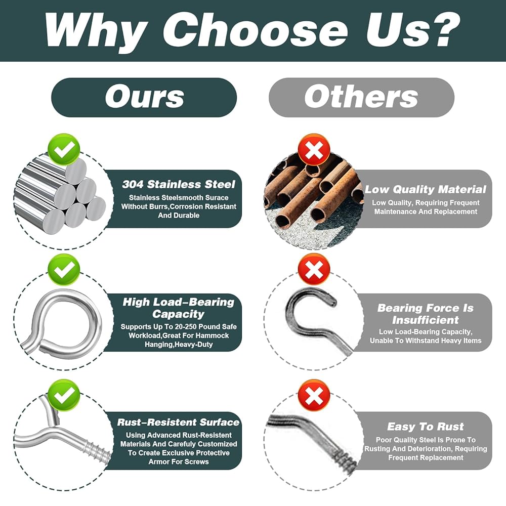【Easy to Install】These M6 stainless steel eyelet screws are sturdy and easy to screw in with a hole. Eye screws for wood go in wood smoothly and take up a little room.