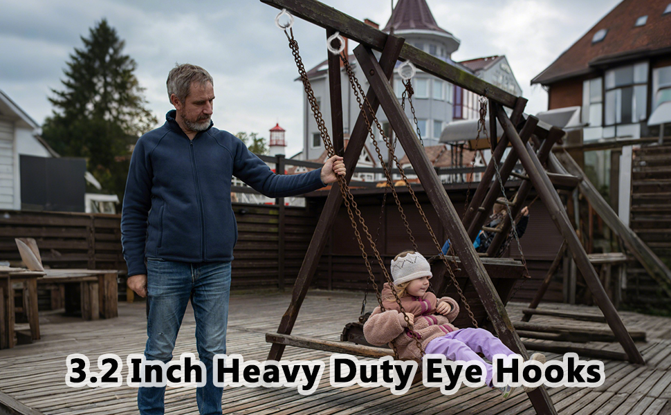 【Heavy Duty Eye Lag Screws】3.2 inch screw eyes made from 304 stainless steel material with zinc plated smooth surface, anti-rust and anti-corrosion, ensuring long-lasting performance in various environments. Also these eye bolts screw in can hold up to about 250lbs/113kg