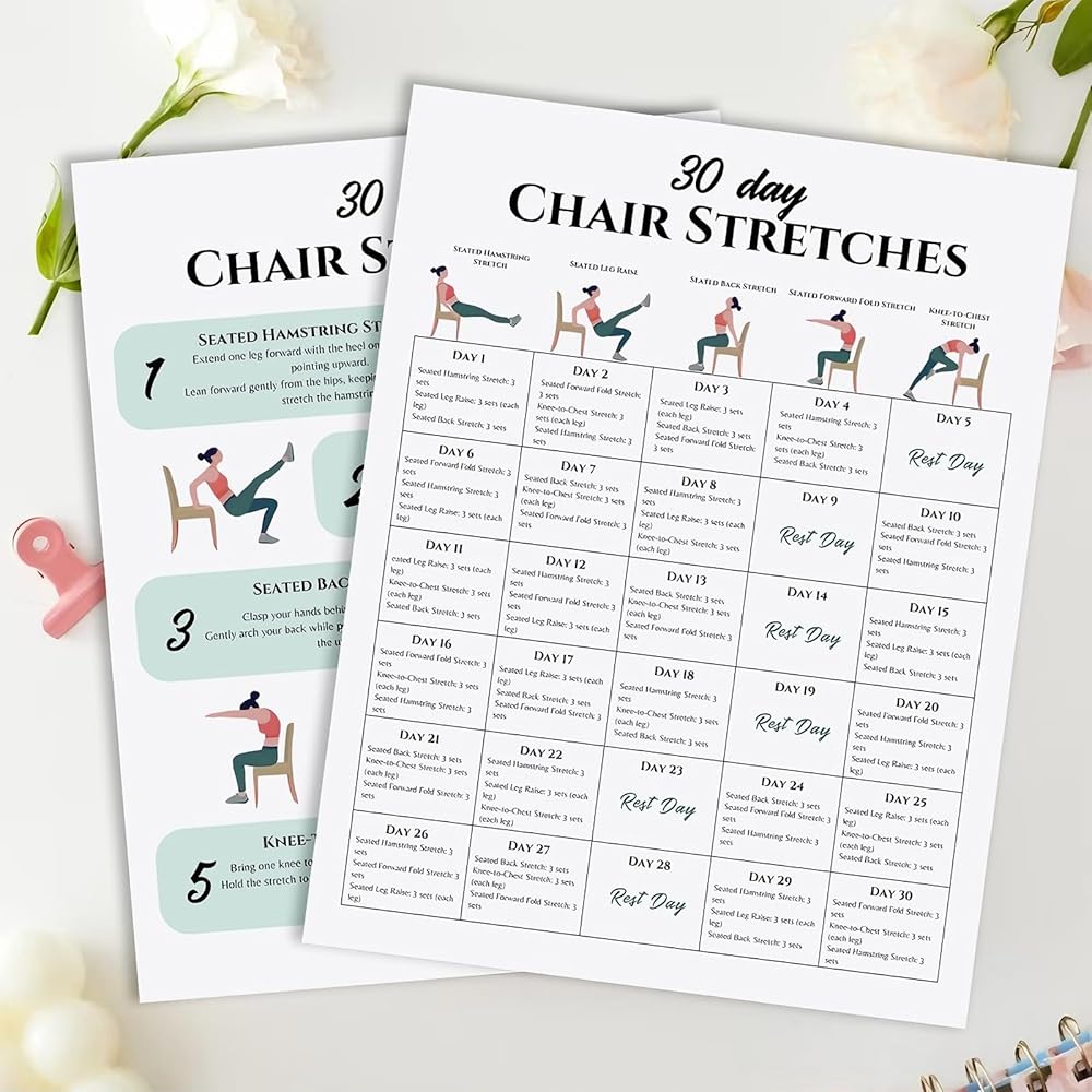 30 Day Chair Workout Bundle, 30-Day Senior Chair Exercise Program – Seated Workout Chart & Guide for Seniors | Gentle Chair-Based Exercises for Strength, Mobility & Balance | Easy-to-Follow Illustrated Fitness Routine